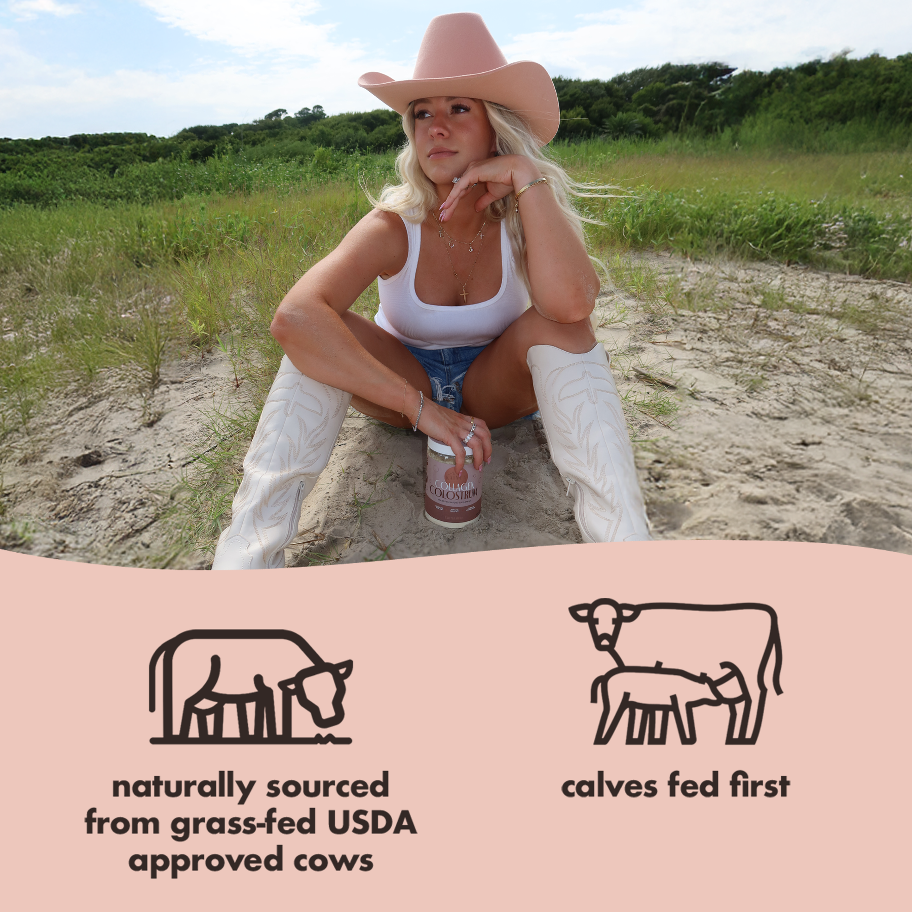 Our colostrum is naturally sourced from grass-fed cows, at approved USDA Grade A dairies. Calves are fed first—calves are fed colostrum before collection. Only excess Colostrum is sold. The calves are not deprived of colostrum.