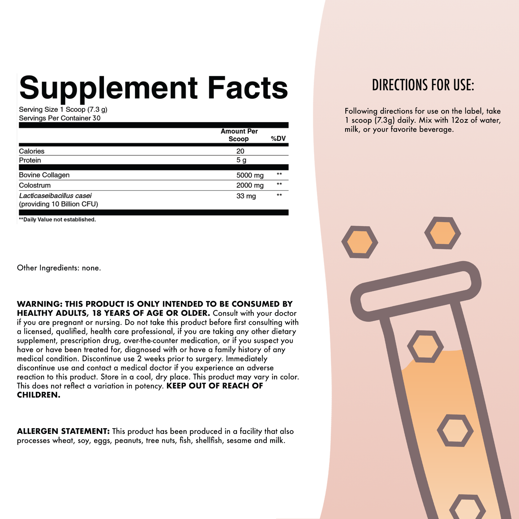 Collagen Colostrum+ blends collagen and probiotics to support beauty and wellness from the inside out. Rich in both nutrients and antibodies, and works synergistically with probiotics to promote a healthy gut, glowing skin and strong connective tissues†.